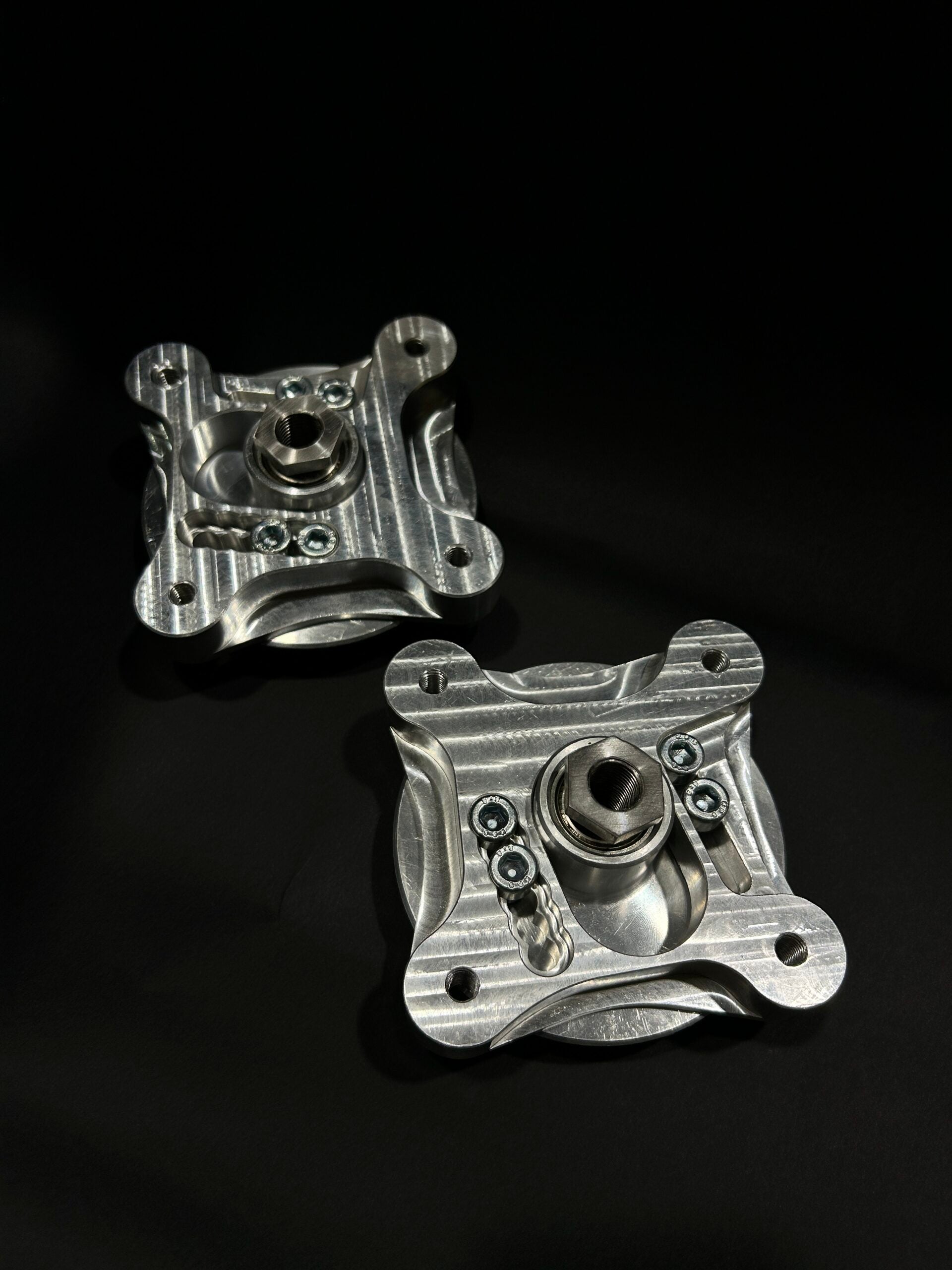 Zastosowanie motorsportowych przegubów kulowych (uniball) eliminuje luzy i gwarantuje powtarzalną, precyzyjną regulację nawet po wielokrotnych zmianach geometrii. Płyty wykonane są z aluminium 6082 obrabianego CNC i zabezpieczone twardą anodą, co zapewnia wysoką trwałość podczas intensywnej eksploatacji torowej.